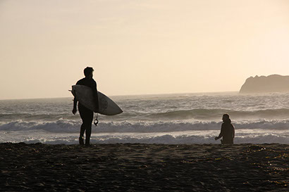 Surfer auf dem Weg ins Wasser